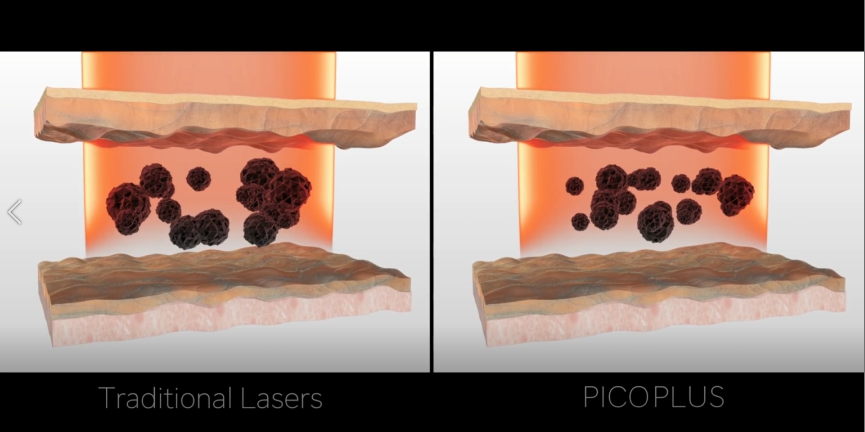PICOPLUS皮秒雷射是一種較新型的皮膚治療技術,雷射擊發速度比傳統奈秒雷射擊發速度快千倍,運用「光震波原理」能夠將色素粒子震碎成更細小的粉塵狀,讓身體更容易代謝;同時更短的脈衝時間,能夠降低雷射在肌膚停留的時間,減低傳統雷射容易造成過多熱傷害及組織破壞的機率,是更新、更安全的肌膚治療利器。