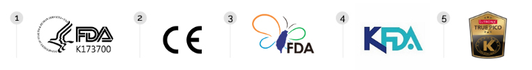 美國FDA、歐盟CE、台灣衛福部TFDA、韓國KFDA,以及國際第三方認證機構KTL認證真正『450PS正皮秒』